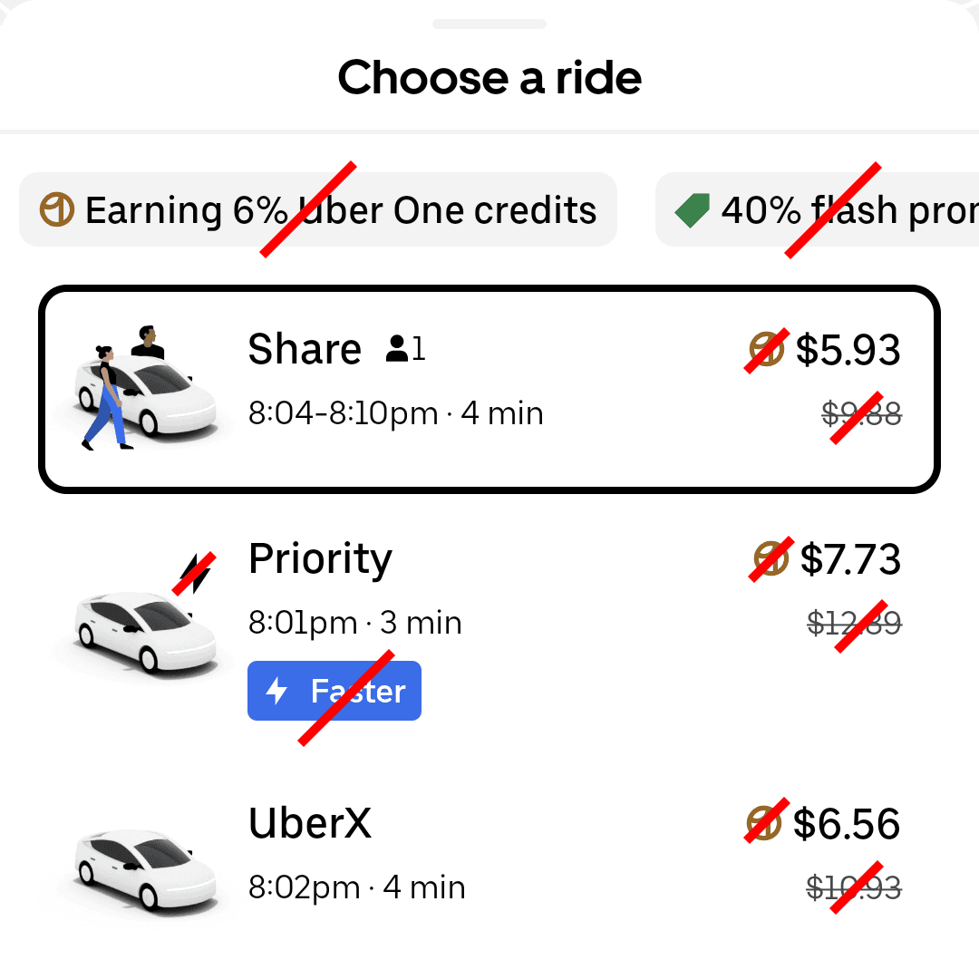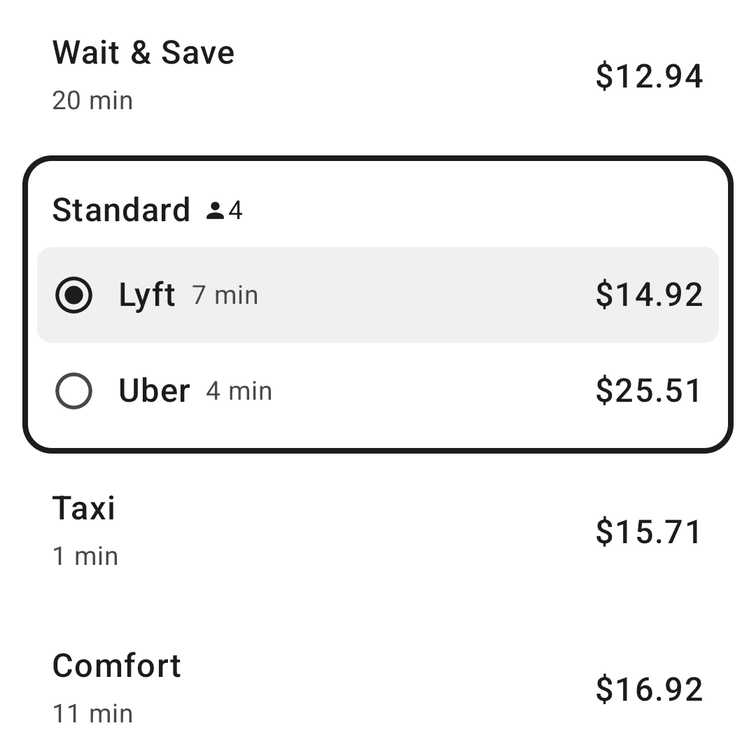 See rides from both apps, sorted by price.
