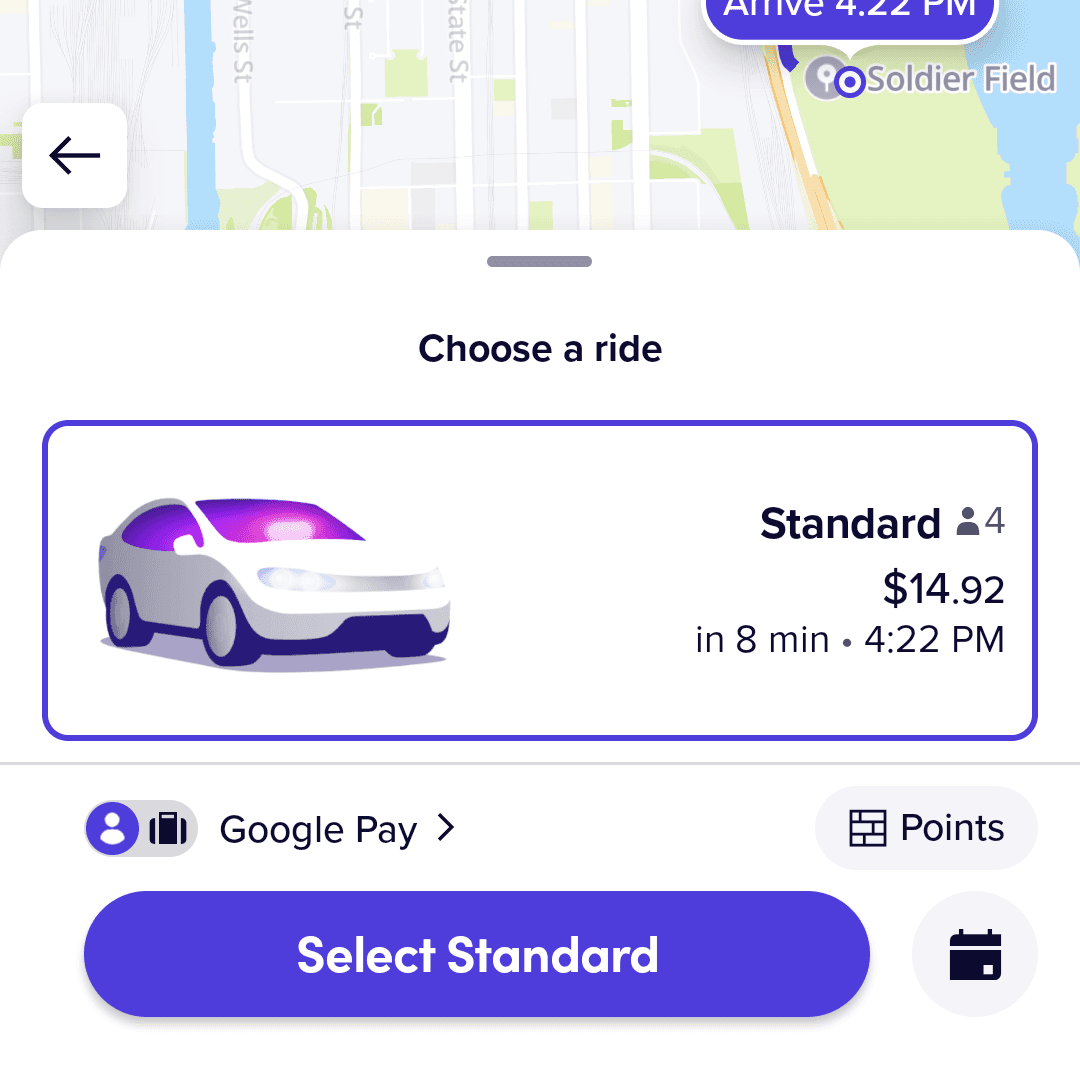 Confirm your selection in the Uber or Lyft app.